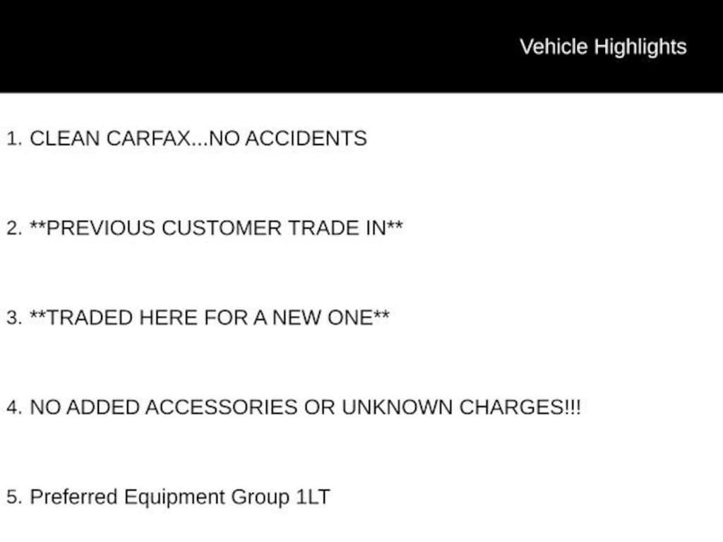 Recent Arrival! CLEAN CARFAX...NO ACCIDENTS, **PREVIOUS CUSTOMER TRADE IN**, **TRADED HERE FOR A NEW ONE**, NO ADDED ACCESSORIES OR UNKNOWN CHARGES!!!, Preferred Equipment Group 1LT. 25/30 City/Highway MPG