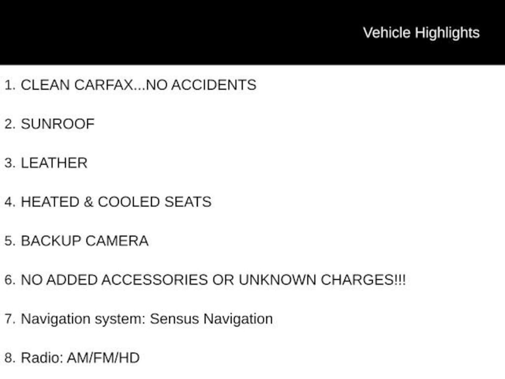 Recent Arrival! CLEAN CARFAX...NO ACCIDENTS, SUNROOF, LEATHER, HEATED & COOLED SEATS, BACKUP CAMERA, NO ADDED ACCESSORIES OR UNKNOWN CHARGES!!!, Air Conditioning, Alloy wheels, Apple CarPlay/Android Auto, Front Bucket Seats, Memory seat, Nappa Leather/Nubuck Seating Surfaces, Navigation system: Sensus Navigation, Power driver seat, Power moonroof, Power passenger seat, Power steering, Power windows, Radio: AM/FM/HD, Remote keyless entry, Sensus Navigation Pro, Speed control, Wheels: 19 5-Double Spoke Black Diamond Cut Alloy. 22/30 City/Highway MPG